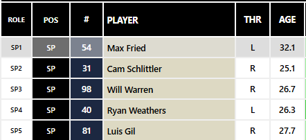 Overall, this rotation has enormous upside with a lot of swing and miss ability. The stuff is phenomenal and per Fangraphs, they have the third highest fWAR in the American League based on starting rotations at 14.6.